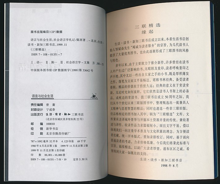 语言与社会生活:社会语言学札记(陈原著·三联版·定价5.5元·三联精选)(12元包邮)