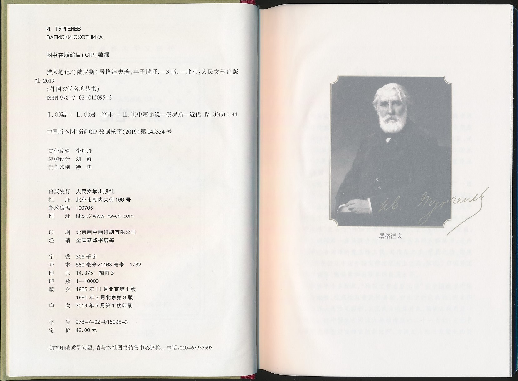 本书尺寸:14.6×21厘米,厚3.5厘米。本书为《外国文学名著丛书》之一,即著名的“网格本。书前有丰一吟所撰《译本序》,此次重印均改为精装本。
