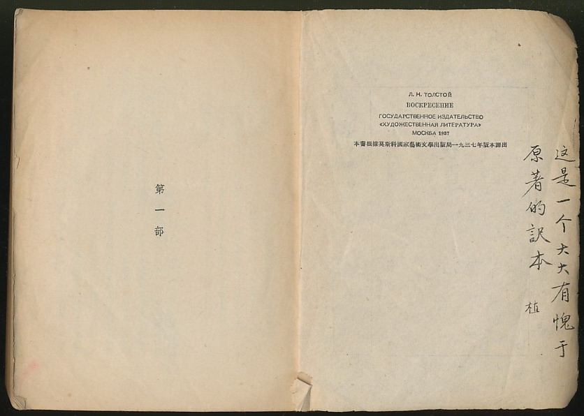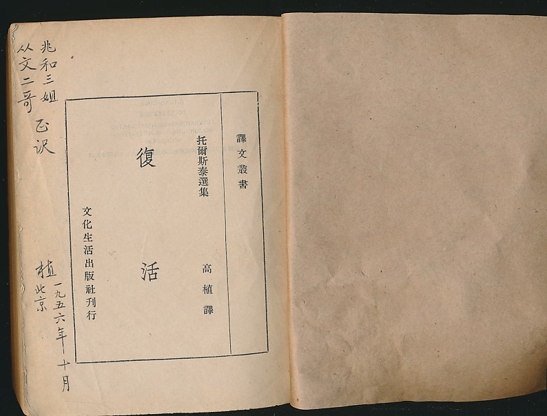主题:复活(高植签赠沈从文夫妇·并题记·文化生活1953年版)